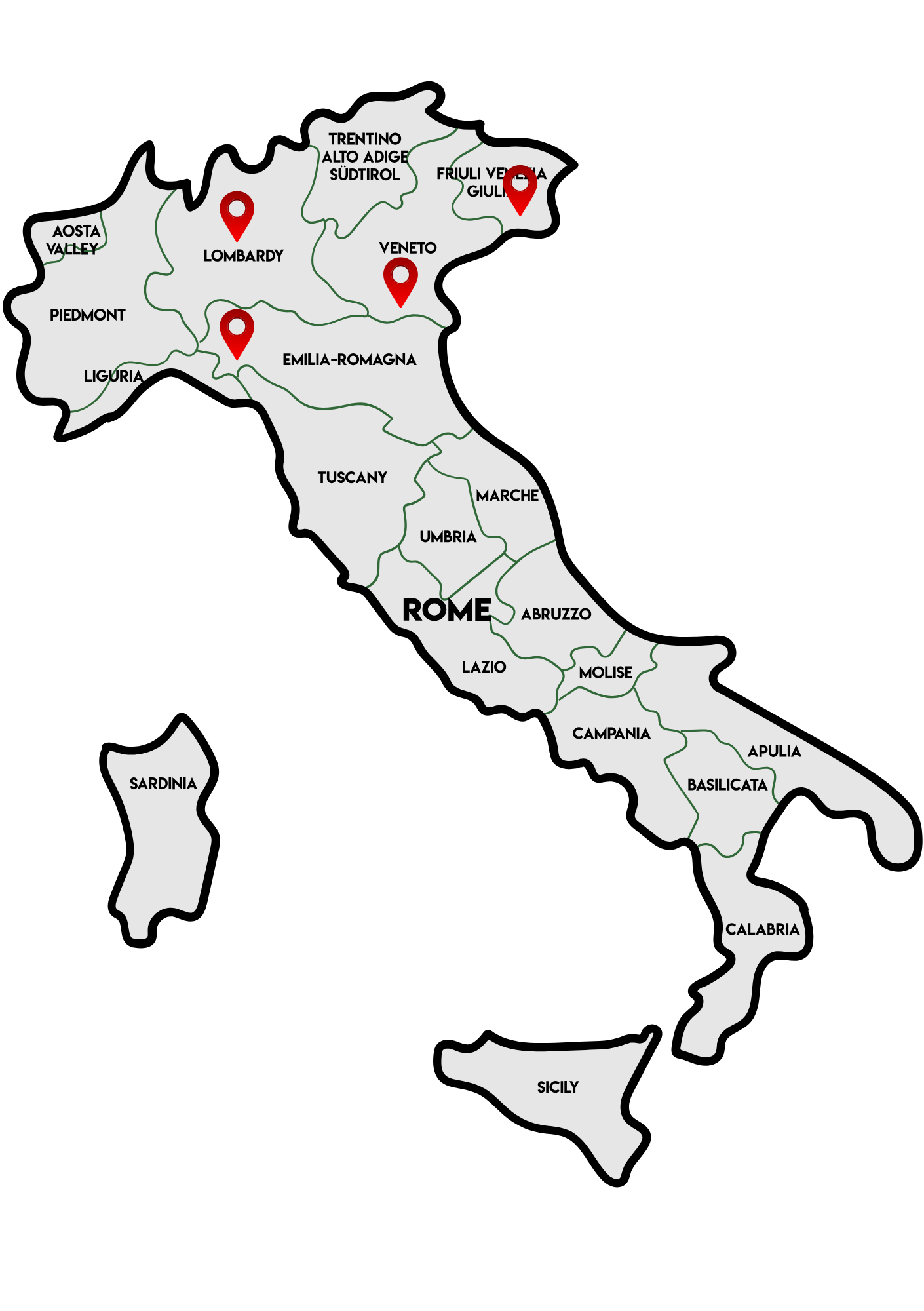 Operiamo con professionalità e competenza in tutto il Nord Italia, con particolare attenzione alle seguenti regioni e province: